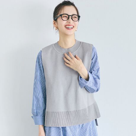 サイドに入ったスリットが抜け感をプラスするニットベスト。