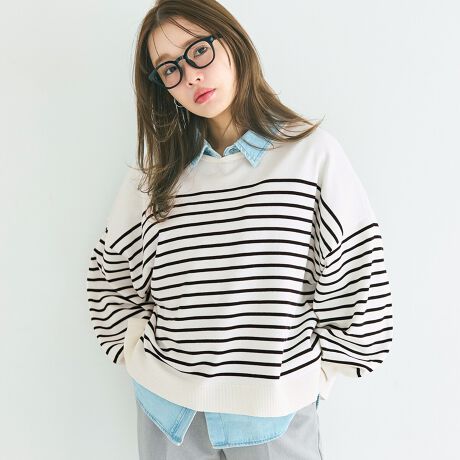 爽やかなボーダー柄が目を惹くニットトップス。