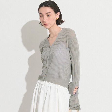 縦リブデザインがすっきりとした印象を与えるシアーニットカーディガン。
