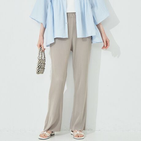 伸びて、美脚。万能ストレッチプリーツイージーフレアパンツ