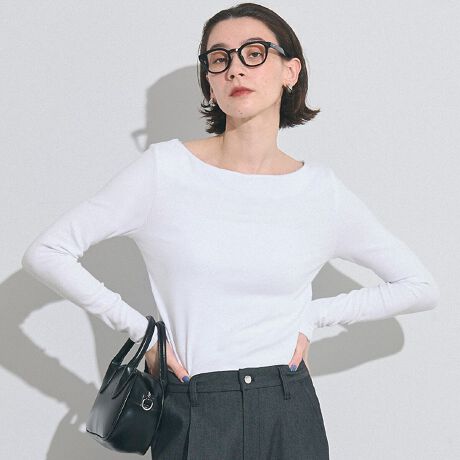 ジャケットのインナーとしても使いやすい、万能トップスです。