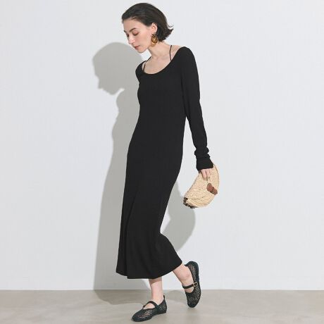 しなやかな落ち感で魅せる、とろみリブUネックワンピース