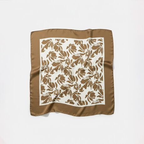 ニュアンス配色の花柄が上品に映える、フラワー大判スカーフ
