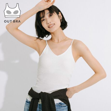 バックオープンで女性らしい抜け感を叶えるカップ付きキャミソール