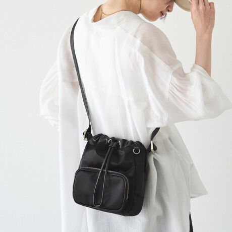 巾着の絞り具合やショルダーベルトの長さ調整によって、表情を変えて楽しめるデザイン。