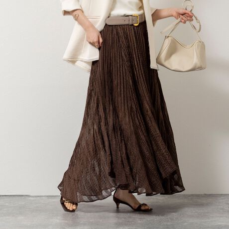 ・動くたびに揺れる細やかなプリーツが、女性らしい軽やかさを演出するプリーツスカート
