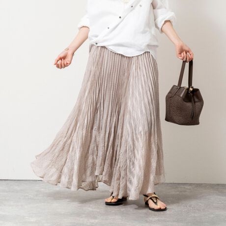 ・動くたびに揺れる細やかなプリーツが、女性らしい軽やかさを演出するプリーツスカート