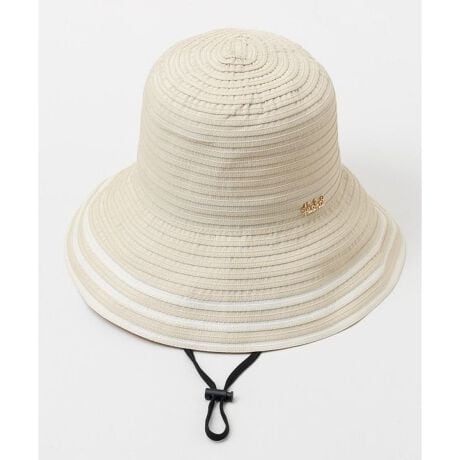 [型番:44YP6107-2026]折りたたんでもしわになりにくいグログラン素材のUVハット。チャームがさりげないアクセントになり、上品な印象。UVカット仕様と顎ひも付きで実用性も高く、リゾートにもおでかけにもおすすめ。サイズ調整可能/UVカット素材