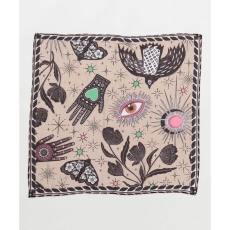 [型番:IKHP6105-2026]トルコのお守りをイメージしたモチーフを、透け感のある軽やかな素材にのせたスカーフ。首や腰に巻いたり、ヘッドアクセにも使えるコーデのアクセントアイテム。