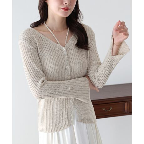 シンプルの中に旬なディティールをプラスしたリブニットカーディガン。