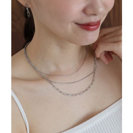 洗練された3種のチェーンが織りなす、モダンな3連レイヤードネックレス