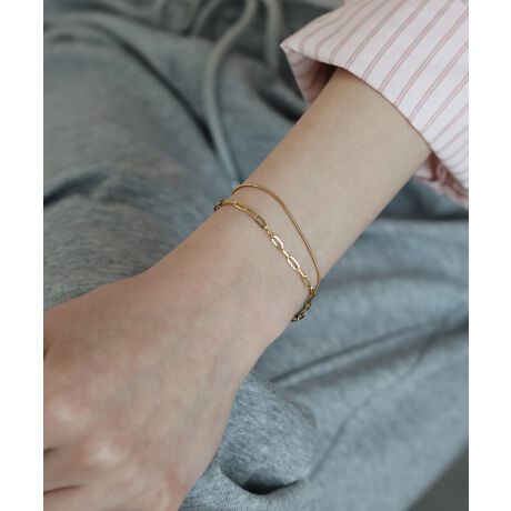 洗練された2種のチェーンが織りなす、モダンな2連レイヤードブレスレット