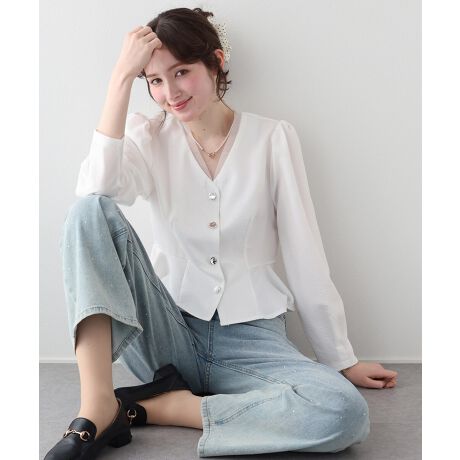 ニュアンスボタンペプラムブラウス