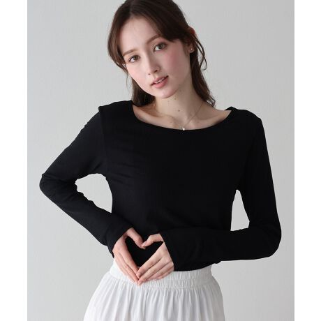 やや大きめのネックとほどよく透け感のある生地がほどよくヘルシーな女性らしさを演出します。