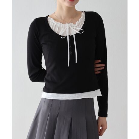 ギャザーリボンレイヤードTシャツ