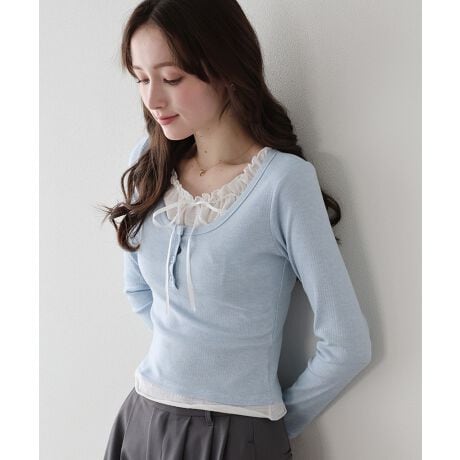 ギャザーリボンレイヤードTシャツ