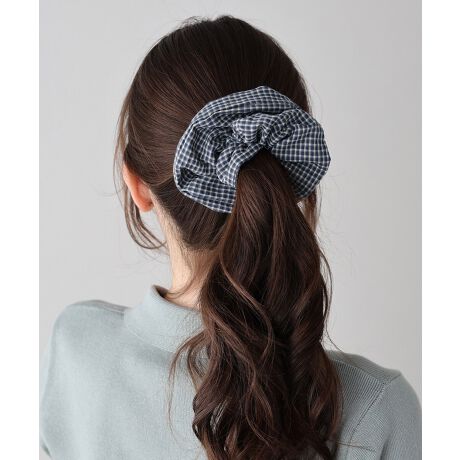 ギンガムチェック柄が、うしろ姿を大人かわいい雰囲気に仕上げるシュシュ。