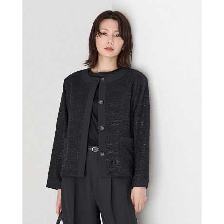 繊細なラメ糸が優しく瞬く、サマーツイードのような奥行きのある表情が魅力のジャージジャケット。