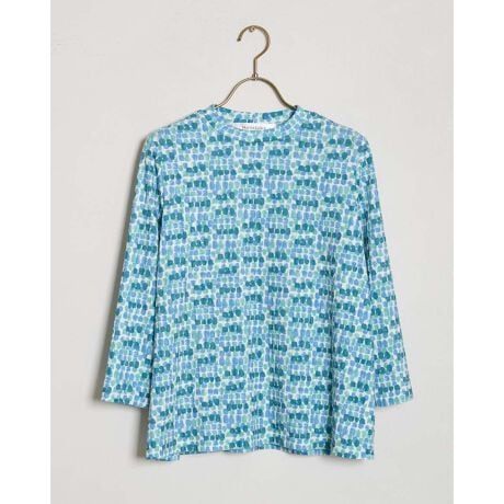 程よい肉感で繊細な表情のあるチェックジャカードにドット幾何柄を重ねたプリントカットソー。