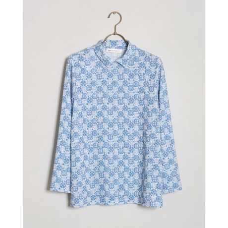 小ぶりで柔らかな印象のシャツカラーが首元をすっきりと演出します。