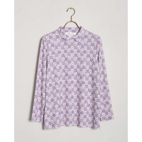 程よい肉感で繊細な表情のあるチェックジャカードにオーナメント幾何柄を重ねたプリントカットソー。