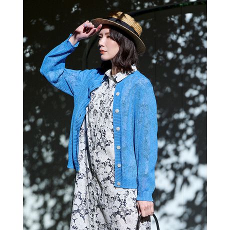 天然の紙糸を使用した上質で洗練された軽やかな着心地のペーパーニットカーディガンです。