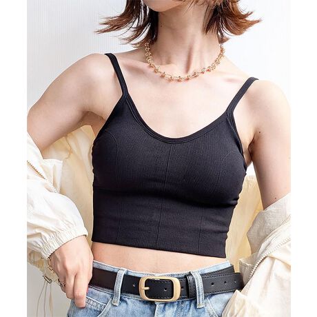 【6色/サイズ展開】カップ付きキャミ リブシームレスブラトップ 調節可
