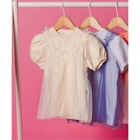 Boribon(ボリボン)の半袖Tシャツ「チュールジョインTシャツ」は、ナチュラルで華やかさもあるデザインが魅力のアイテム。