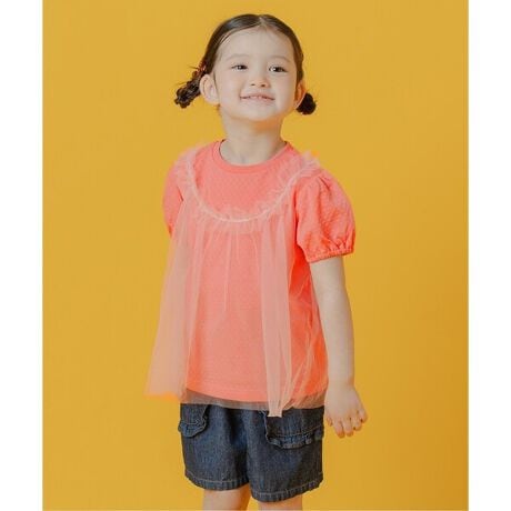 Boribon(ボリボン)の半袖Tシャツ「チュールジョインTシャツ」は、ナチュラルで華やかさもあるデザインが魅力のアイテム。