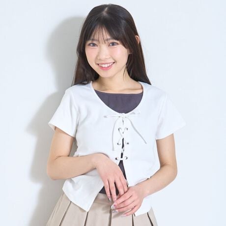 フロントの大胆なレースアップが魅力的な半袖Tシャツです。