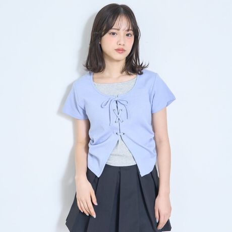 フロントの大胆なレースアップが魅力的な半袖Tシャツです。