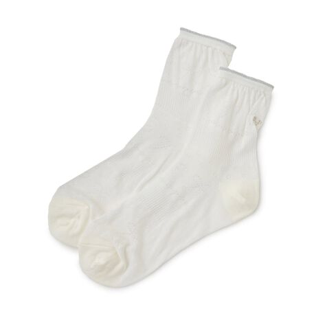 リボンモチーフの透かし柄が魅力的なクルーソックスです。
