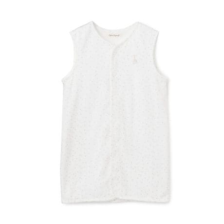 さりげなく輝くスターダスト柄の生地で仕立てたスリーパーです。胸元にあしらったソフィーの刺しゅうがワンポイントになっています。寝たままでお着替えやおむつ替えがしやすい、スナップボタン仕様の前開きタイプ。おやすみタイムの防寒にはもちろん、体温調節にも便利なアイテムです。【おすすめの着用時期は春夏シーズン】