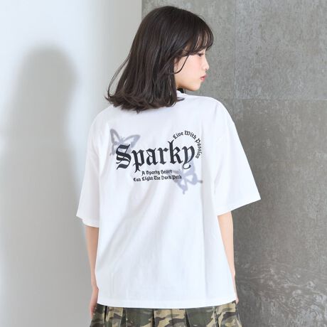 ロゴにお花と蝶々のグラフィックを取り入れた半袖Tシャツです。