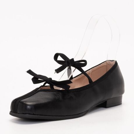 パイピングデザインがポイントになり、リボンが大人可愛いローヒールパンプス。