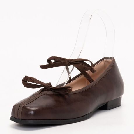 パイピングデザインがポイントになり、リボンが大人可愛いローヒールパンプス。