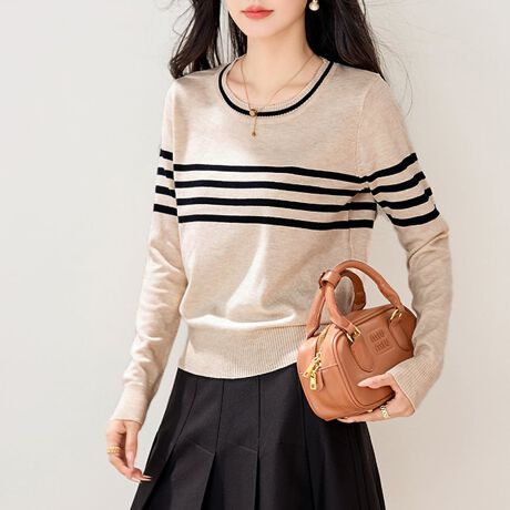ベーシックなボーダー柄が映える長袖ニットトップスです。