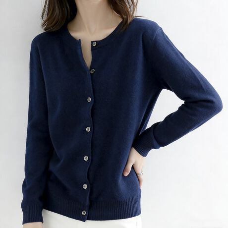 ラウンドネック×リブ編みが映える長袖カーディガンです。