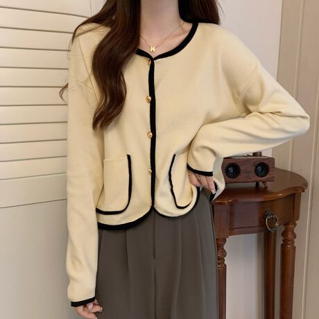 配色トリムカーディガン
