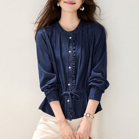 ウエストのドロスト仕様が特徴的な、長袖デニムブラウスです。