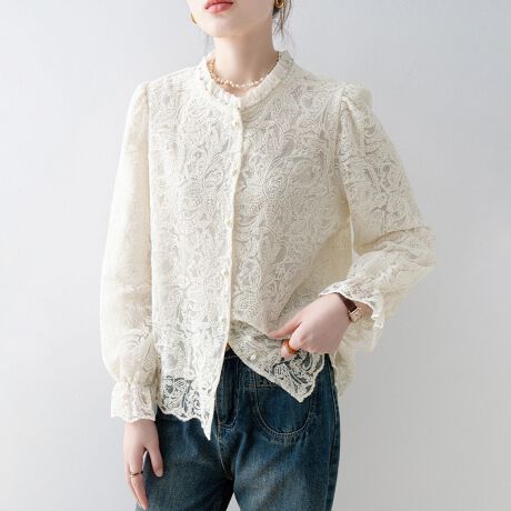 ハイネックレースブラウス