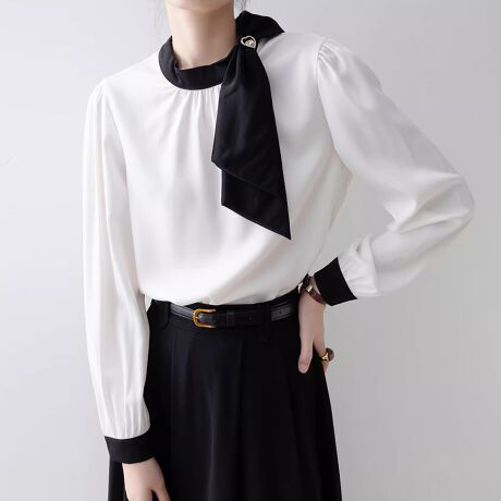 配色スカーフ付きブラウス