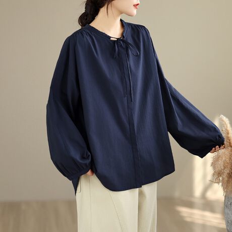 バックに施されたプリーツが印象的な長袖ブラウスです。