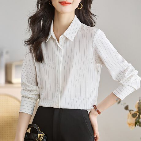 ストライプ柄が印象的な長袖シャツブラウスです。