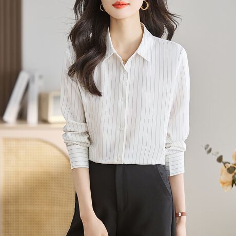 ストライプ柄が印象的な長袖シャツブラウスです。