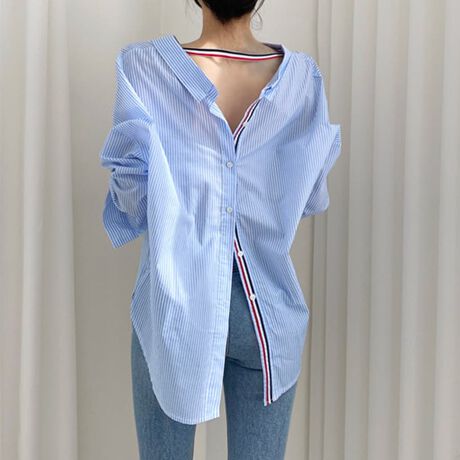 2WAYストライプ切替×バックボタンシャツ