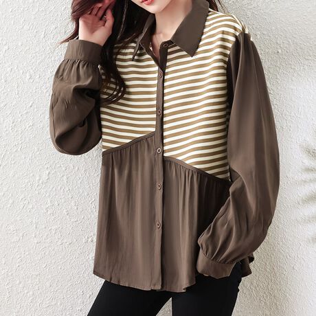 ストライプ切替が印象的な長袖ブラウスです。