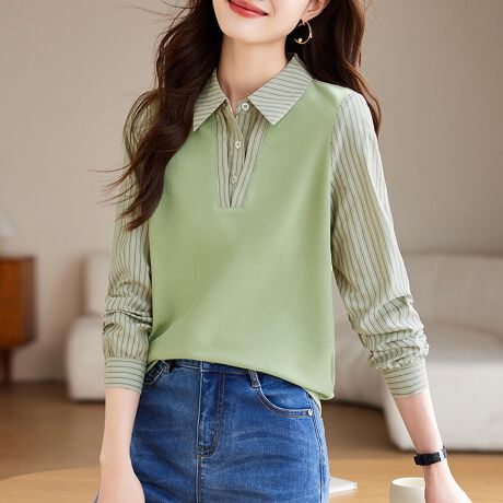ストライプ柄シャツとベストが一体化したレイヤード風トップスです。