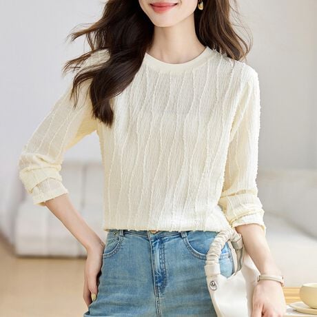 凹凸素材×ラウンドネックトップス レディース トップス