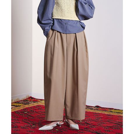 ワイドなバレルシルエットながら、タックのおかげで腰まわりがすっきり見えるパンツです。